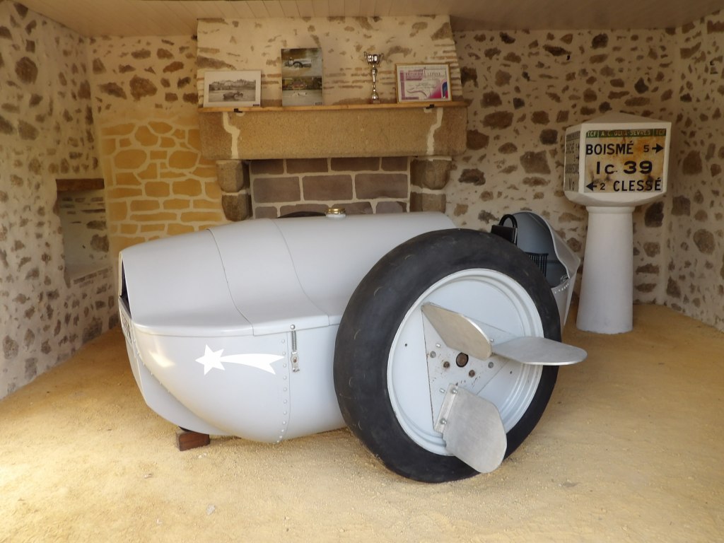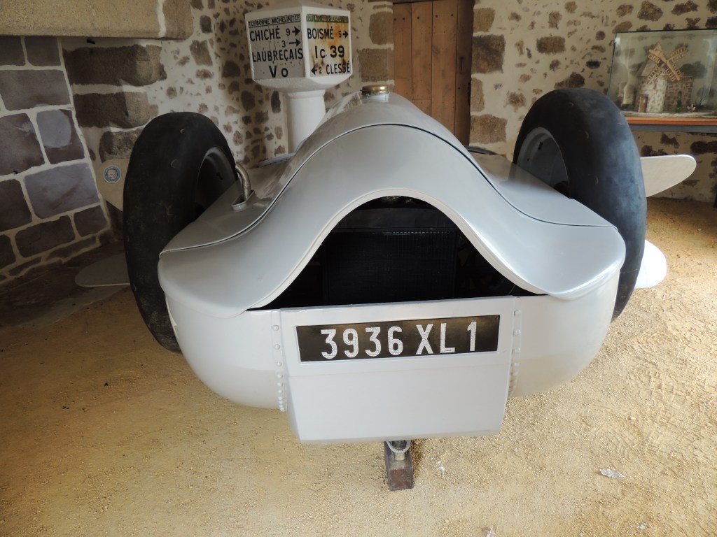 Quelques kilomètres à travers les routes de Gâtine et nous voilà devant la voiture inventée en 1932 par Ulysse Texier de la Caillerie et reproduite par les amis d’Ulysse.