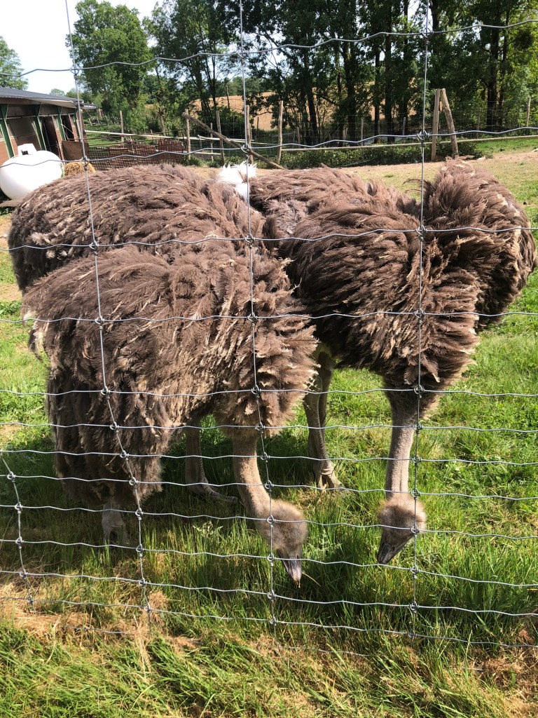 Accueillis par le propriétaire de l’exploitation, nous y avons découvert les autruches, les émeus et autres nandous. A l’écoute de ce dernier nous avons parcouru les allées de l’élevage cheminant entre les parcs. Les émeus couvent dans l’herbe et les autruches paradent (nous sommes en période nuptiale). La promenade se termine par l’enclos des juvéniles. L’autruche est un oiseau que l’on consomme surtout pour les fêtes de fin d’année. Ses plumes sont utilisées pour faire des plumeaux mais aussi dans la haute couture et le costume de scène et sa peau se tanne pour faire de la maroquinerie.